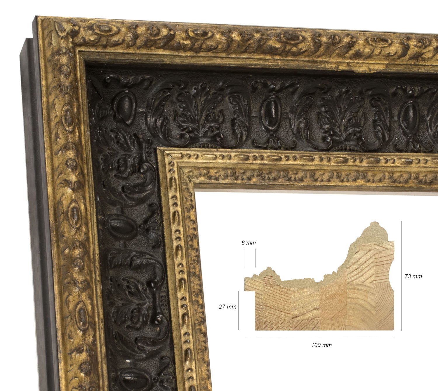 Cadre baroque en bois noir avec fil d'or 6301.601