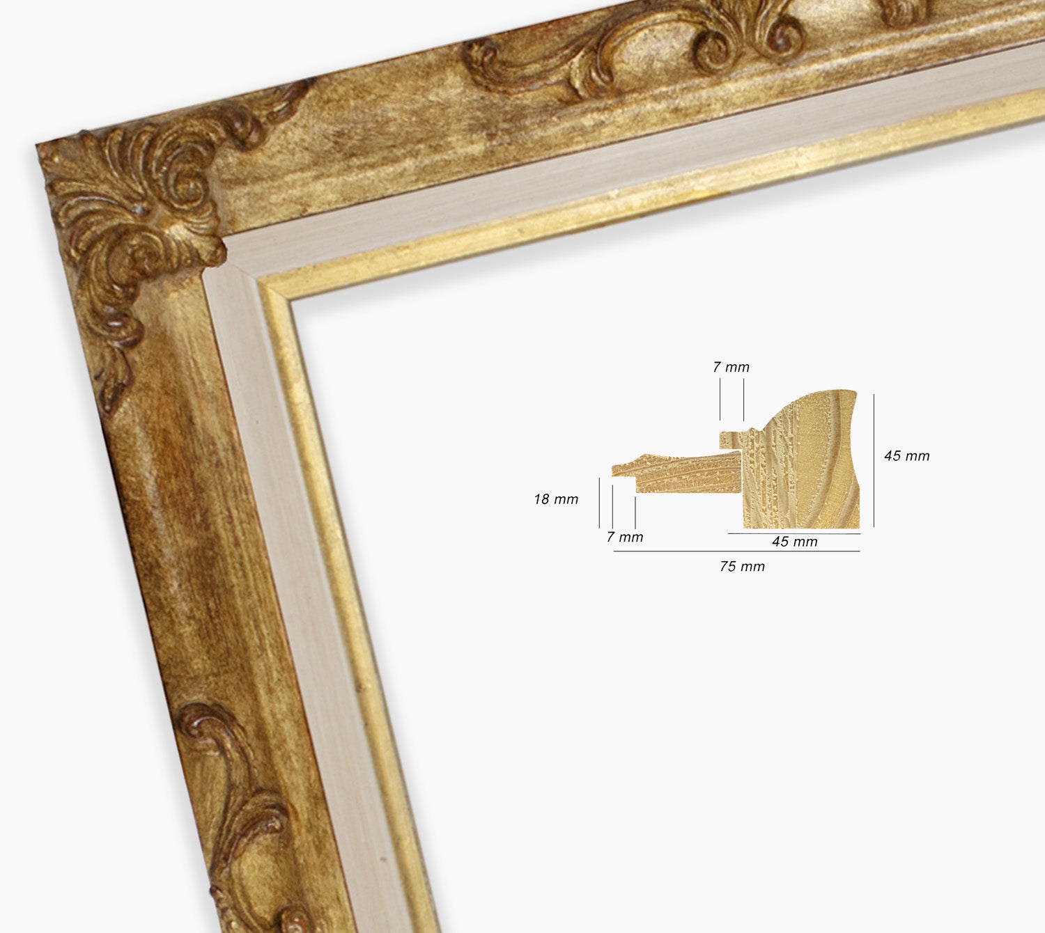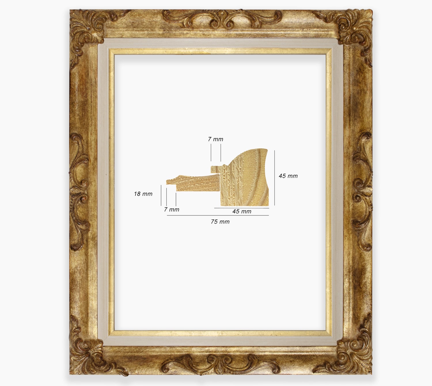 Antique gold leaf baroque frame with Marie-Louise, finely handcrafted frame suitable for framing work you wish to showcase. Frame suitable for framing antique and classic paintings, magnificent mirrors can also be created.