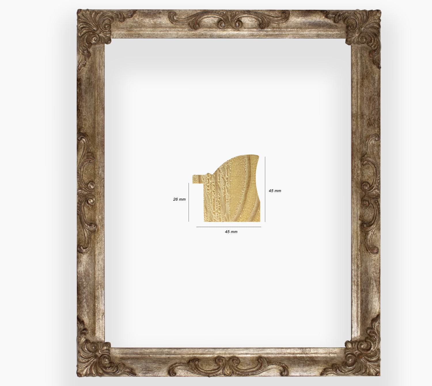 Wooden frame with antique silver leaf, finely hand-worked frame suitable for the framing work that you wish to highlight.