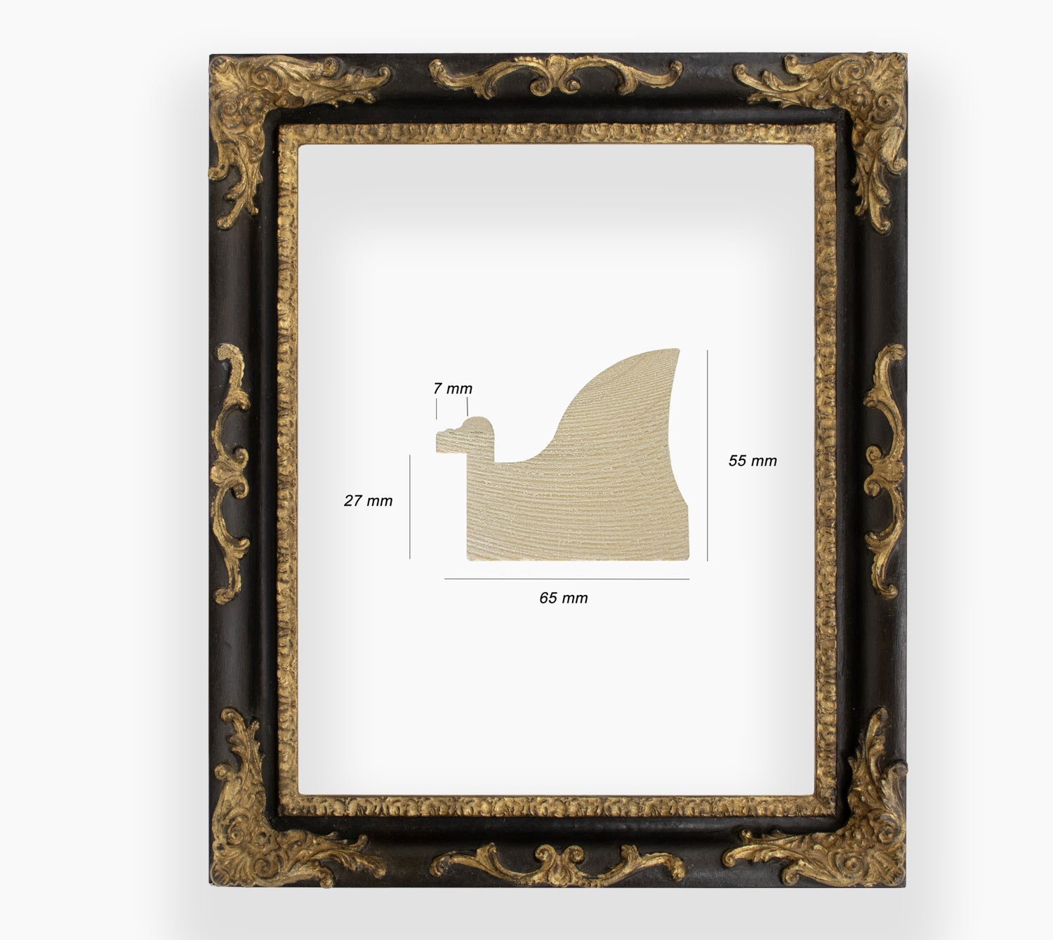 COR.430.601 wooden frame with gold leaf black throat