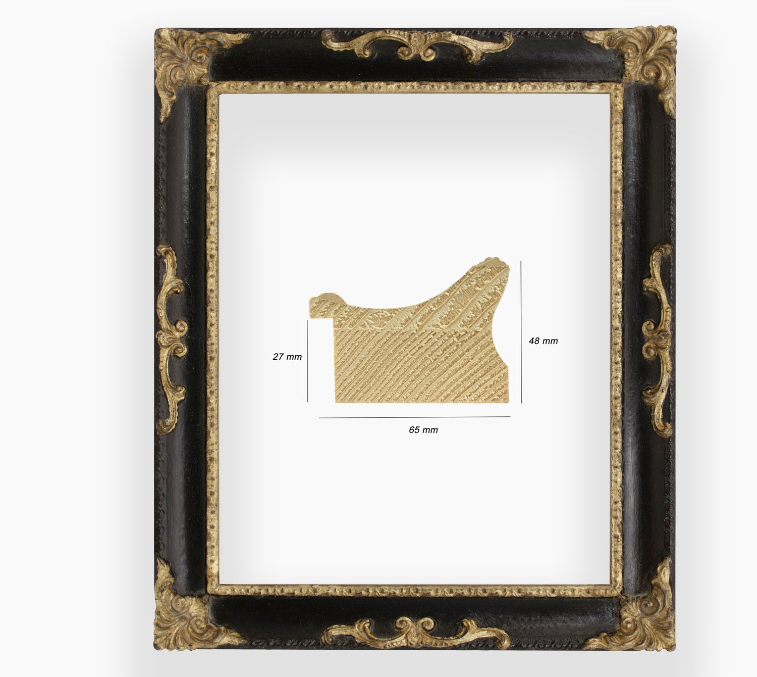 Baroque gold leaf frame with black waxed groove, finely hand-worked frame suitable for the framing work that you wish to highlight. Frame suitable for framing old and classic paintings, beautiful mirrors can also be created.