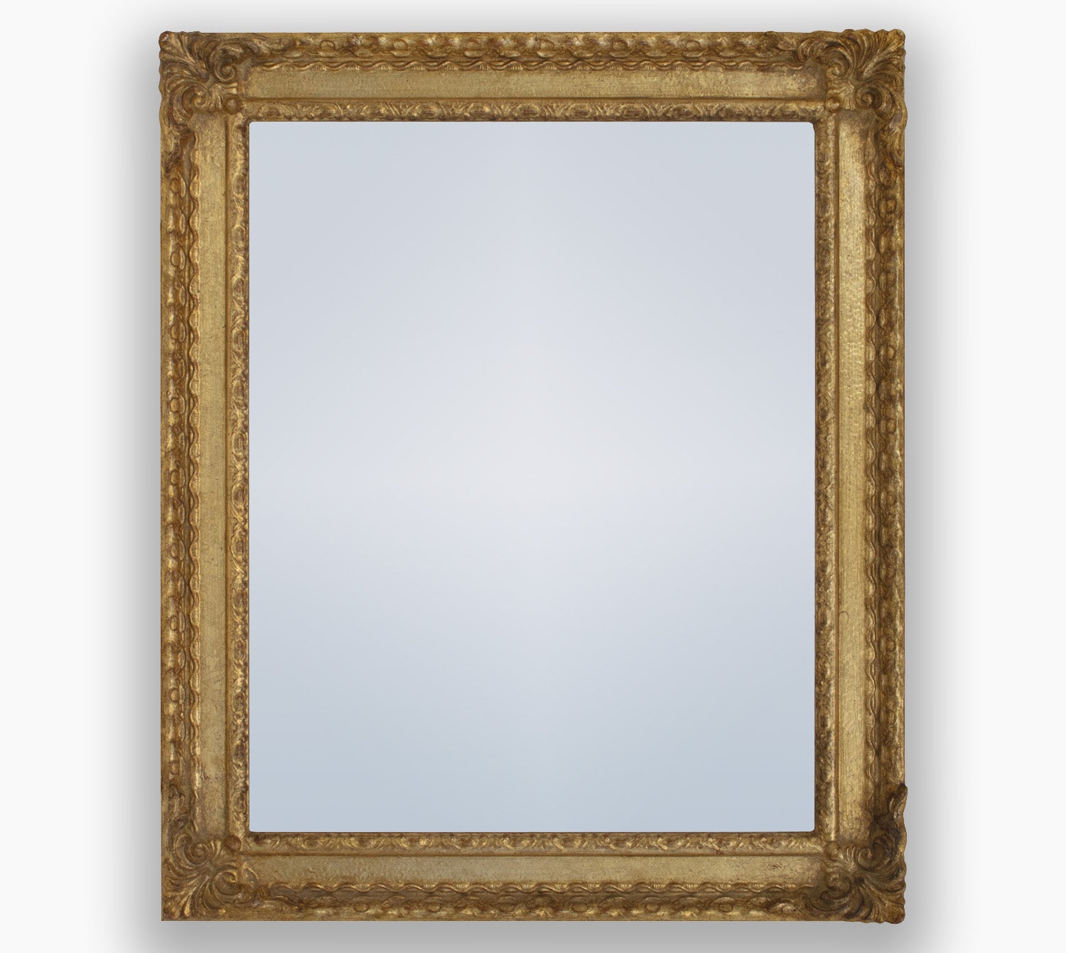 Espejo con marco dorado y marco de madera con acabado patinado, ideal para realzar cualquier interior y para insertar un objeto valioso en un mueble.